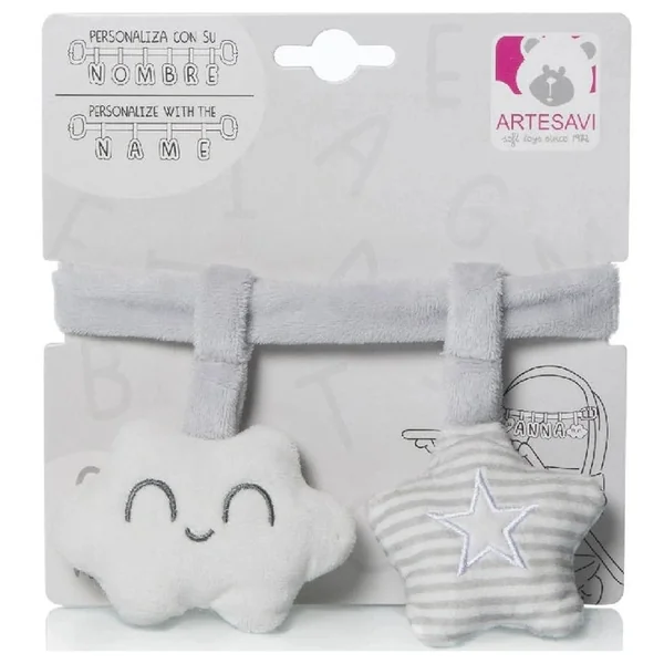 Artesavi – Customisable Rattle Ribbon With Two Plush Gray – Stuffed Animals