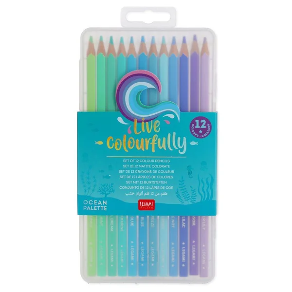 SET OF 12 COLOURING PENCILS – LIVE COLOURFULLY – OCEAN PALETTE