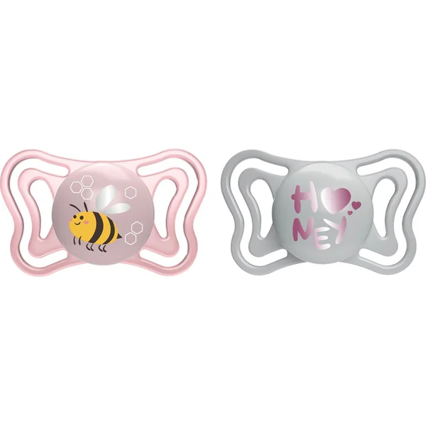 CHICCO Sucette Physio Comfort silicone nuit fille – étoiles/ourson 2 pcs, 16-36 m+
