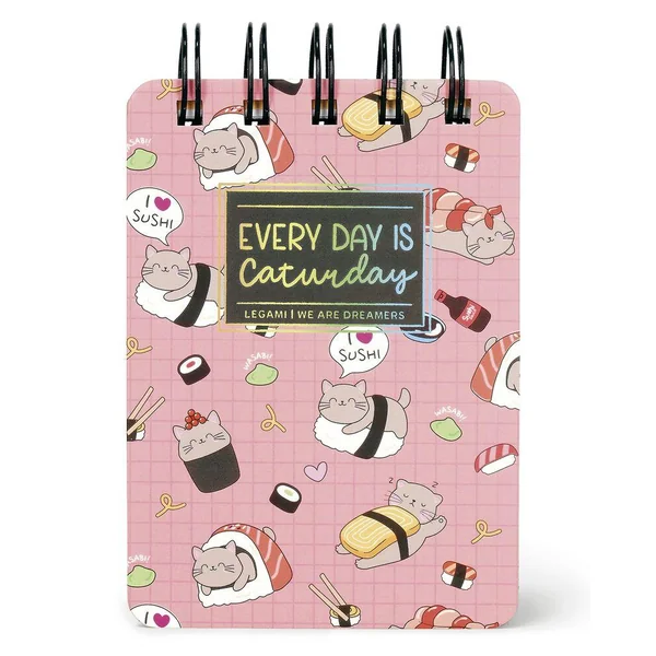 LINED SPIRAL- BOUND NOTEPAD – SPIRAL NOTEPAD – MINI – SUSHI CAT