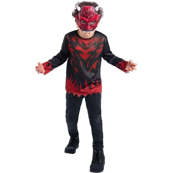 TOP ET MASQUE DIABLE ENFANT -TAILLE 5-8 ANS