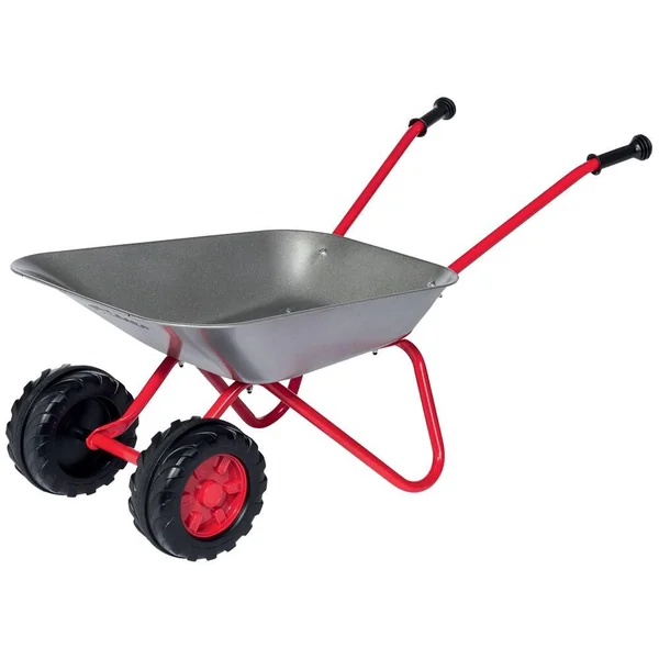 BROUETTE EN METAL GRISE ET ROUGE AVEC 2 ROUES