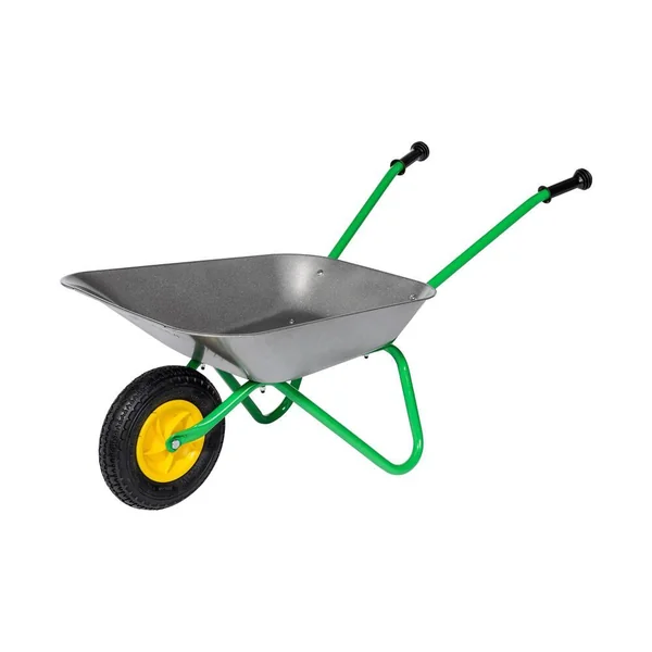 BROUETTE EN METAL GRISE ET VERTE AVEC ROUE GONFLABLE
