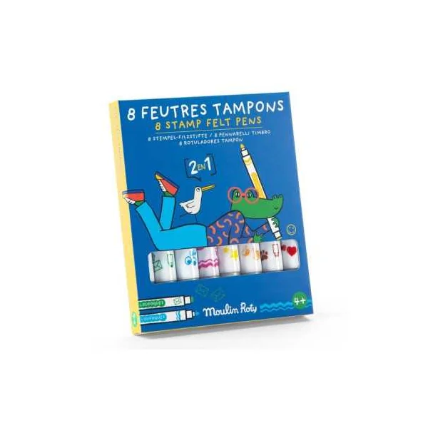 8 feutres tampons 2 en 1 Les Loufoques – Moulin Roty