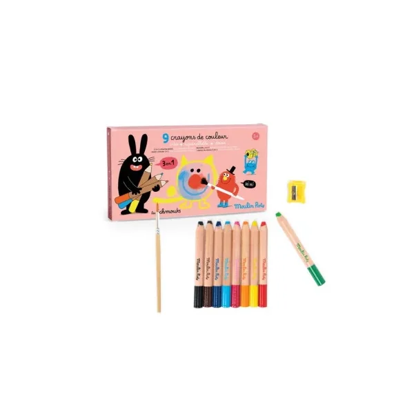 9 crayons de couleurs 3 en 1 Les Schmouks – Moulin Roty