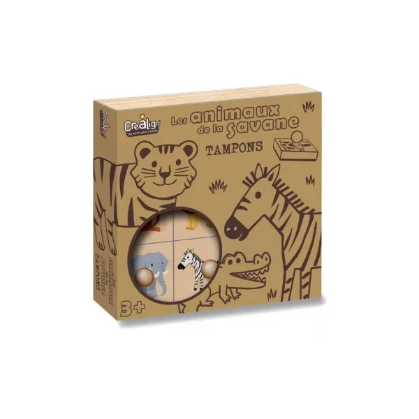 9 Tampons en Bois Animaux de la Savane Créalign’ | Dès 3 ans