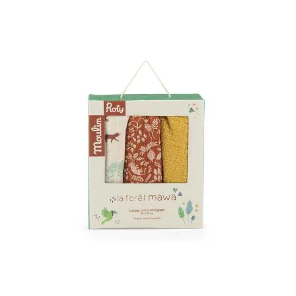 Set de 3 langes imprimés La forêt Mawa – Moulin Roty