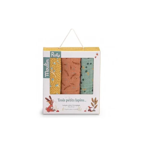 Set de 3 langes imprimés Trois Petits Lapins – Moulin Roty