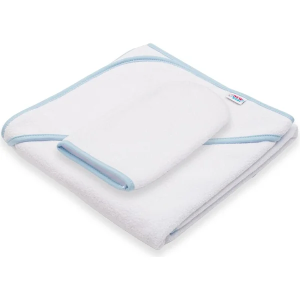 Serviette de bain pour enfant en éponge avec capuche New Baby BASIC 80×80 blanc-bleu
