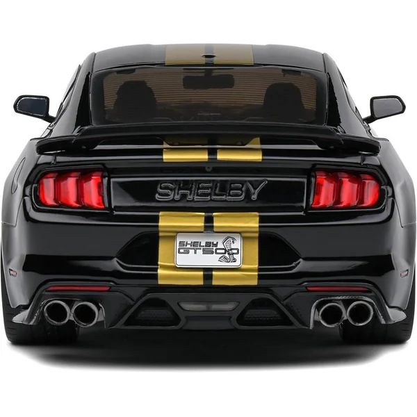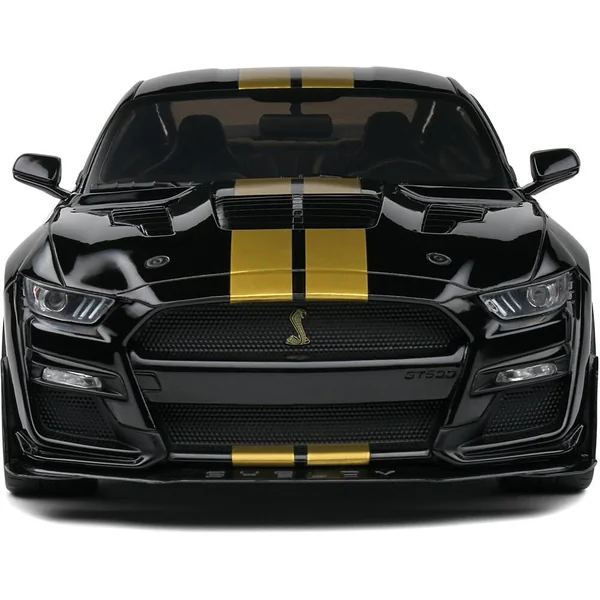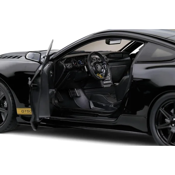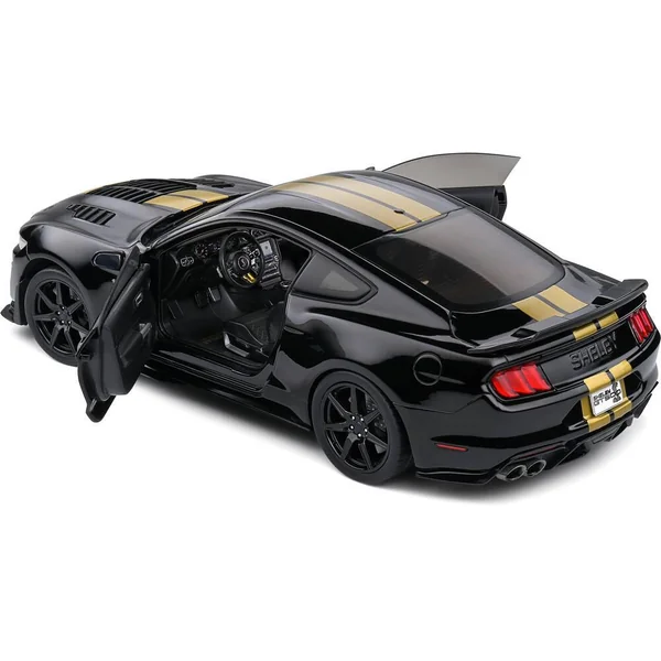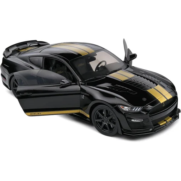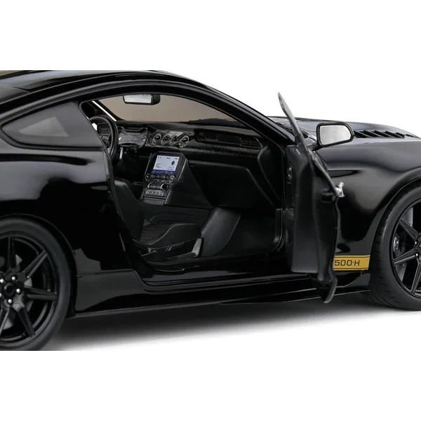 Voiture au 1/18 ème. Il s’agit de la Shelby Mustang GT500-H 2023. Coloris / noir. Voiture en métal, roues libres. Les portes à l’avant s’ouvrent.