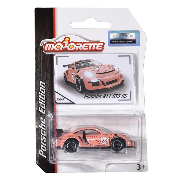 Gamme Premium Majorette. Véhicule en métal à roue libre, reproduction modèle Porsche à l’échelle 1/64ème. Pack spécial design Porsche. Fonctions de jeu / portes ouvrantes, phares translucides, suspensions.