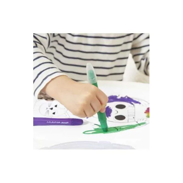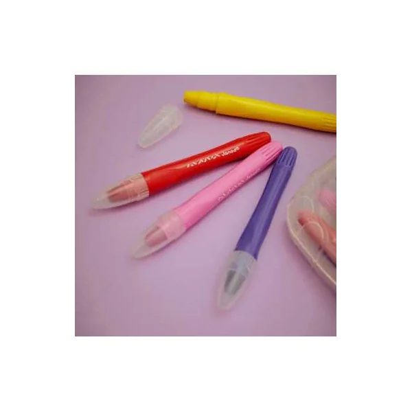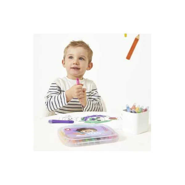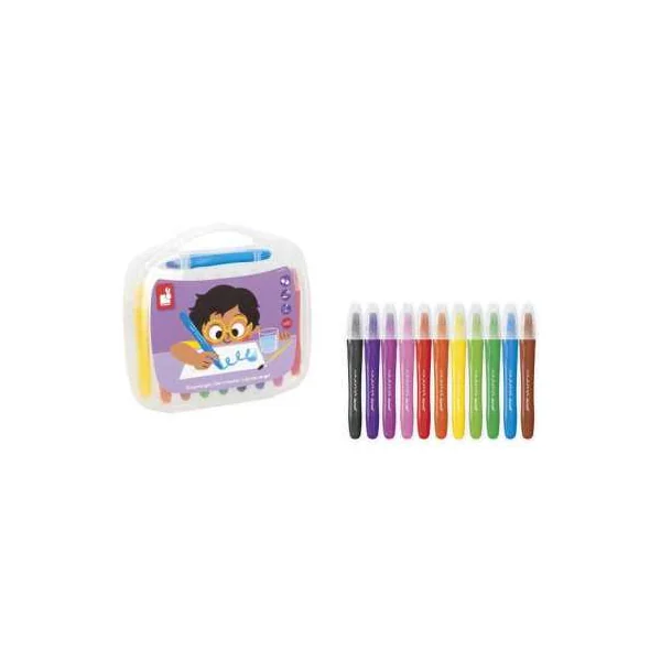Issu de la gamme Colo de Janod, ce kit propose une palette de 10 couleurs lumineuses : jaune, orange, rouge, rose, violet, vert clair, vert foncé, bleu, marron et noir. Chaque crayon possède un bouchon transparent pour éviter le séchage. Des crayons avec une excellente glisse et un système « twist » pour faire sortir la matière.