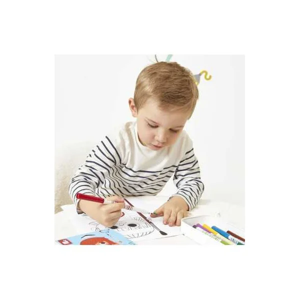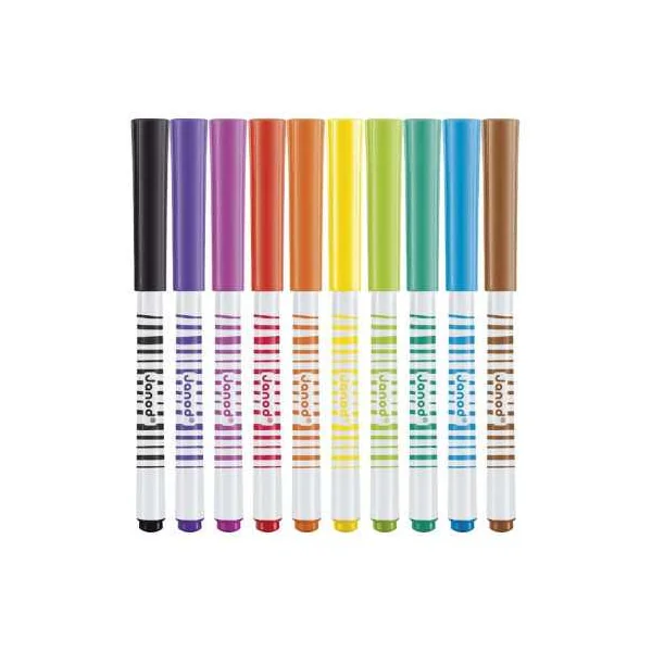 Issu de la gamme Colo de Janod, ce kit propose une palette de 10 couleurs lumineuses : violet, rose, orange, rouge, jaune, vert, bleu… Des feutres avec encre lavable, parfaits pour les dessins et les croquis.