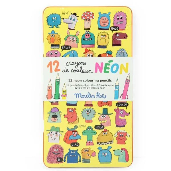 Vive la couleur ! 12 crayons de couleurs fluos inspirés par l’univers des Schmouks. La boîte en métal joliment illustrée par Delphine Durand est parfaite pour protéger les crayons et les emporter partout avec vous.