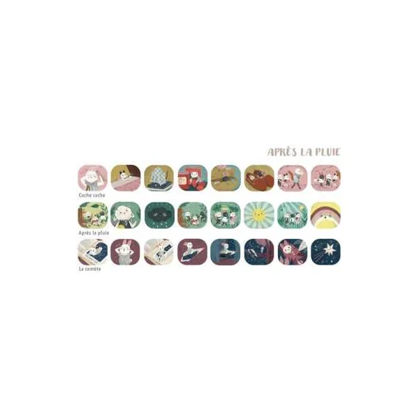 Découvrez la boite de 3 disques pour lampe à histoires de la collection Après la pluie de Moulin Roty, 3 histoires à insérer dans n’importe quelle lampe à histoire pour projeter 3 histoires sur le thème de cette collection élégante et poétique.