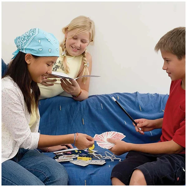 The 4M KidzLabs Magic Kit includes a variety of magical tools, such as a wand, a deck of playing cards, a magical card, a rope, six mystical number cards, two dice, and other specially designed accessories. Each item is crafted to help children master 12 impressive tricks that will leave their audience in awe. The kit also comes with a comprehensive 16-page instruction booklet, ensuring that young magicians can easily grasp the techniques required to perform each trick successfully.