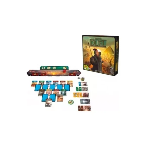 Repos Production propose dans 7 wonders Duel un tout nouveau système de partage des cartes, 3 conditions de victoire, des progrès scientifiques, un système militaire original et 12 merveilles à combiner pour des parties addictives et toujours renouvelées.