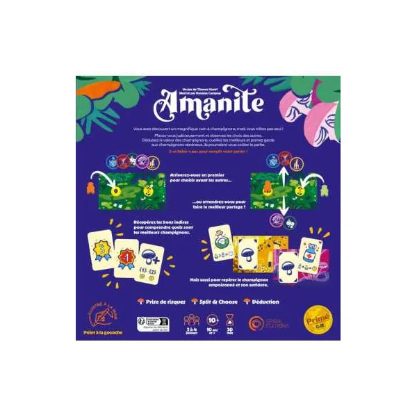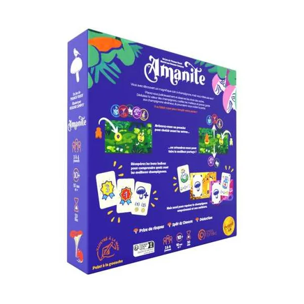Découvrez le jeu Amanite de Spiral Éditions, un jeu de stratégie et de collecte pour jouer de 2 à 4 joueurs à partir de 10 ans. Un jeu de société dans lequel tout sera question de déduction et de prise de risque.