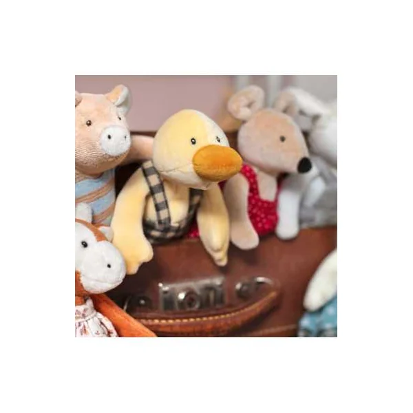 Une poupée en velours au doux visage brodé, facile à saisir par les petites mains. Salopette vichy, petits yeux aimants et bec jaune, Amédée le canard est l’ami idéal pour partager de tendres moments de complicité avec bébé.