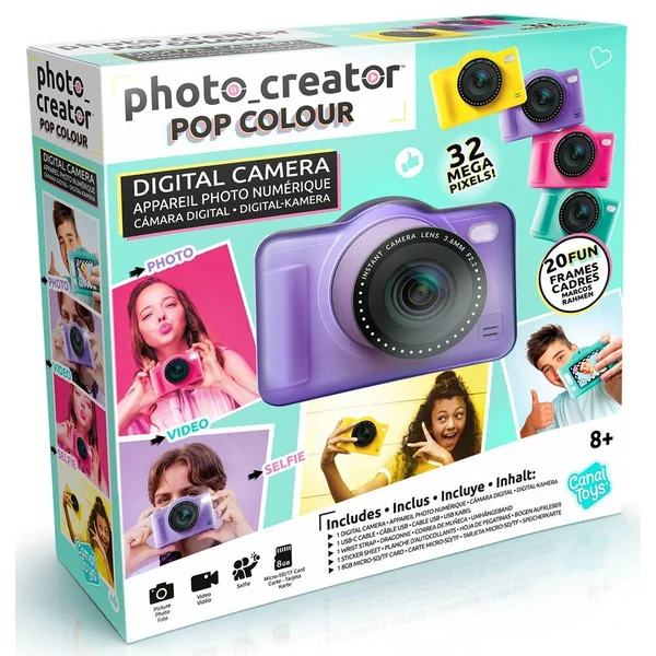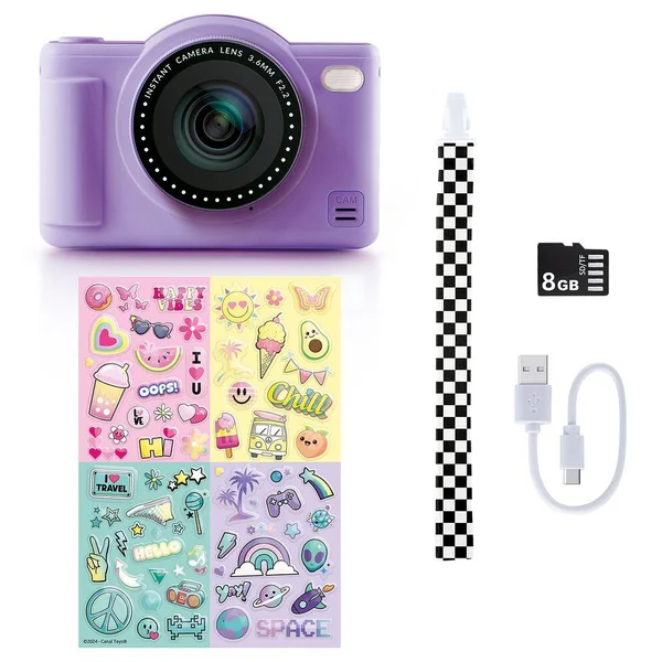 Un mini appareil photo numérique compact violet avec mémoire intégrée pour prendre des photos et vidéos !