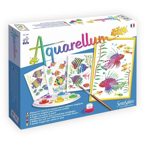 Fantastique ! Quelques gouttes de peinture et tous les enfants pourront réaliser de véritables chefs-d’œuvre. Aquarellum Junior est basé sur une technique, créée par Véronique Debroise, de sertissage sur papier vélin, qui ne laisse la peinture adhérer que sur des surfaces réservées. Le motif apparaît au fur et à mesure du passage du pinceau et peut être repeint jusqu’à ce que le tableau soit parfait. Une activité idéale pour initier les enfants à l’art en comprenant le mélange des couleurs, stimuler l’imaginaire et la concentration.