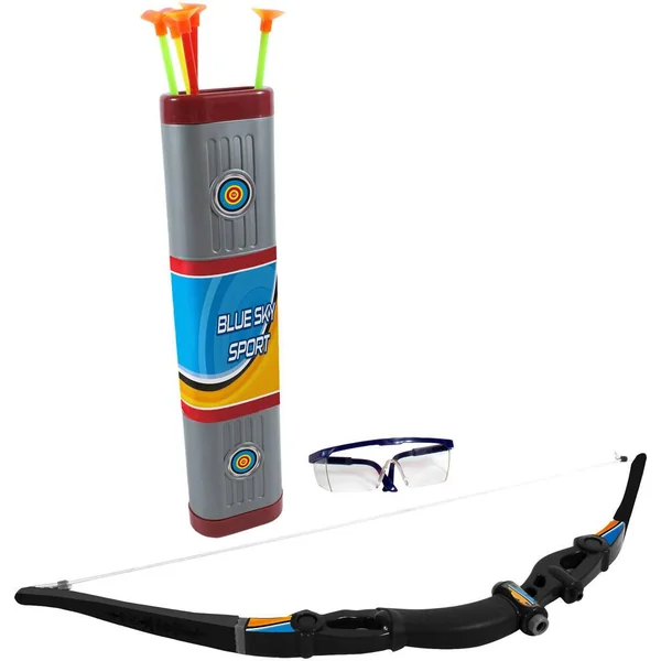 Un arc, 5 flèches, 1 carquois, 1 cible et 1 paire de lunettes.