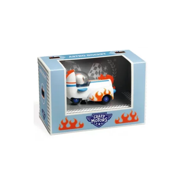 Découvrez Astro Rocket de la collection Crazy Motors de Djeco, une voiture en métal avec son pilote. Un jouet pour les enfants de 3 à 9 ans.