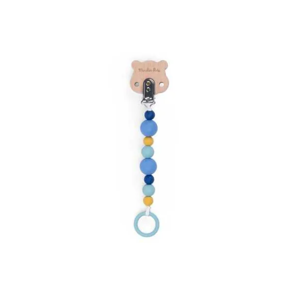 Attache-tétine hamster en bois et silicone pour ne plus perdre la sucette de bébé. Les perles de silicone sont sans danger, il pourra jouer avec et les mâchouiller. A clipser sur les vêtements de bébé.