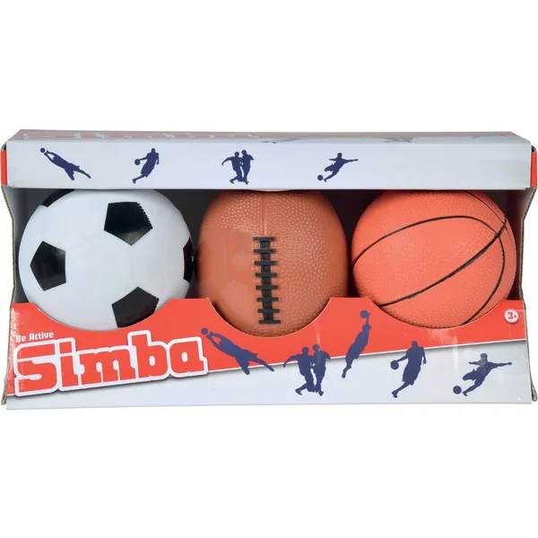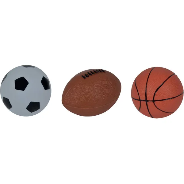 Pack composé de 3 ballons : 1 ballon de foot, 1 ballon de basket, 1 ballon de football américain. Diamètre 9-10cm.