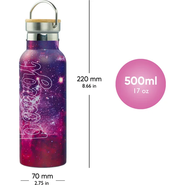 BAAGL Bouteille isotherme avec bouchon en bambou Galaxy, 500 ml