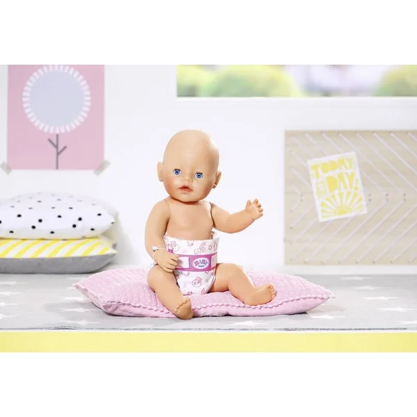 • BABY born est toujours en déplacement, donc elle a besoin de beaucoup boire. Et comme elle boit beaucoup, elle va souvent aux toilettes. Pour s’assurer qu’elle reste au sec, BABY born a beaucoup de super couches avec différents motifs : étoiles, cœurs et ses amis Bruno l’ours, Benno le lapin, Berta le canard et Bello le chien.