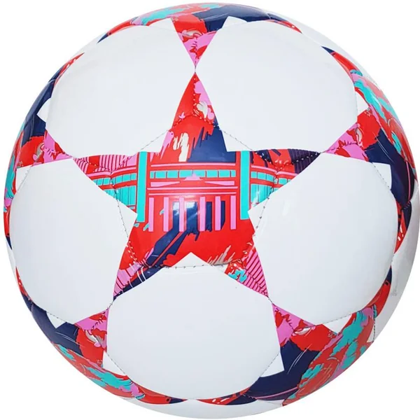 Ballon de football design étoiles. Taille 5. Livré non gonflé. Ballon de 32 panneaux. Poids : 400-440 g. Diamètre gonflé : 22 cm. Convient aux terrains en herbe et non pour les sols durs. Matières : PVC, EVA, tissu, caoutchouc, fil de coton, encre, fil de polyester. Vessie en caoutchouc d’enroulement. Ce produit n’est pas un jouet.