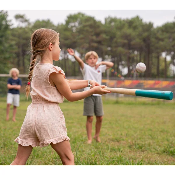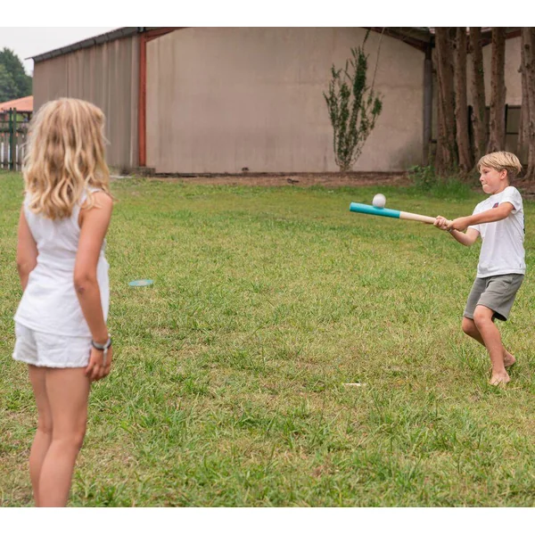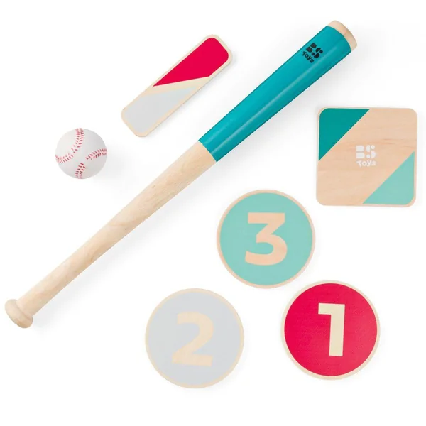 Ce jeu de baseball en bois comprend une batte, une balle, un marbre, un plateau de lanceur et trois bases : frappez, attrapez et jouez pendant des heures pour s’amuser en plein air. Nombre de joueurs : 4-18. Contenu : 1 batte 60 x 5 x 5 cm, 1 balle diamètre 7 cm, 1 marbre 14 x 14 x 1 cm, 1 plateau de lanceur 18 x 5 x 1 cm et 3 bases diamètre 14 x hauteur 1 cm. Jeu d’extérieur développant l’activité physique.