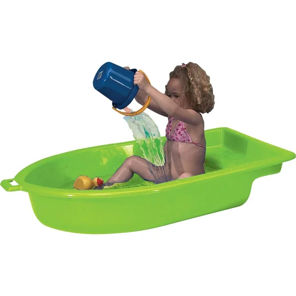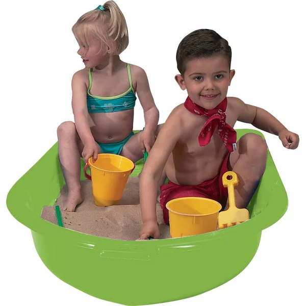 Bac à sable et pataugeoire en forme de bateau. 2 pièces. Chaque pièce dispose d’un siège incorporé, et l’une des pièces peut servir de couvercle en guise de protection du sable. Le bac à sable est muni d’une poignée pour faciliter le transport. Concernant le rangement après utilisation, les deux pièces sont empilables facilitant le stockage du produit en hiver. Pour chaque pièce du bateau : avant utilisation, remplir le produit d’eau ou de sable. Capacité en sable : 45 kg. Capacité en eau : +/- 100 litres. 2 enfants maximum peuvent jouer en même temps dans une partie (1 pièce) du bateau. Poids maximum supporté pour chaque partie (1 pièce) du bateau : 50 kg. Pour enfant d’un poids maximum de 50 kg. Matière(s) du bateau : en polypropylène. Résistant aux UV. Pour une utilisation extérieure. Réservé à un usage familial (privé). A utiliser sous la surveillance d’un adulte. Poids net : 4.48 kg soit 2.24 kg pour chaque pièce. Dimensions : d’un bateau (1 pièce) 118 x 79 x 22 cm, bateau fermé avec couvercle dessus 118 x 79 x 44 cm. Instructions incluses sur le leaflet.