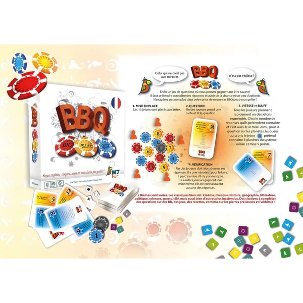 Big Bluff Quiz (BBQ) est un jeu unique et captivant qui a été conçu pour s’amuser. C’est un jeu de questions – ou plutôt de réponses – où vous pouvez gagner sans être savant. Il faut prétendre connaître des réponses et avoir de la chance et un peu d’aplomb. N’exagérez pas non plus dans votre prise de risque car BBQ peut vous griller!