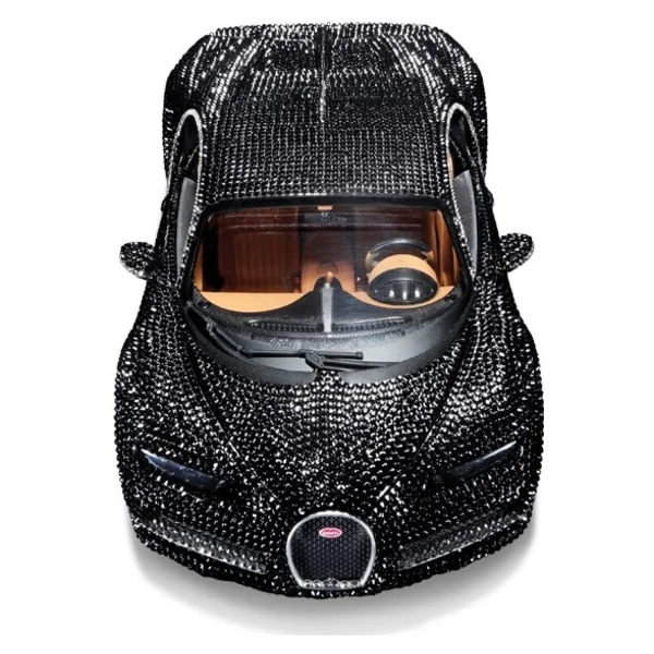 Ce modèle Bugatti Chiron, fabriqué par Bburago, est recouvert de 7 764 cristaux Swarovski Crystals sertis à la main, mettant en avant les forces de deux grandes entreprises. Il montre la vision et les compétences de chacun, combinées en un seul exemple éclatant.