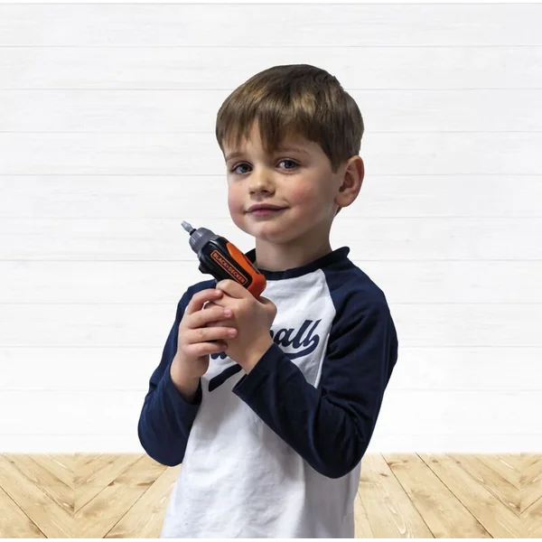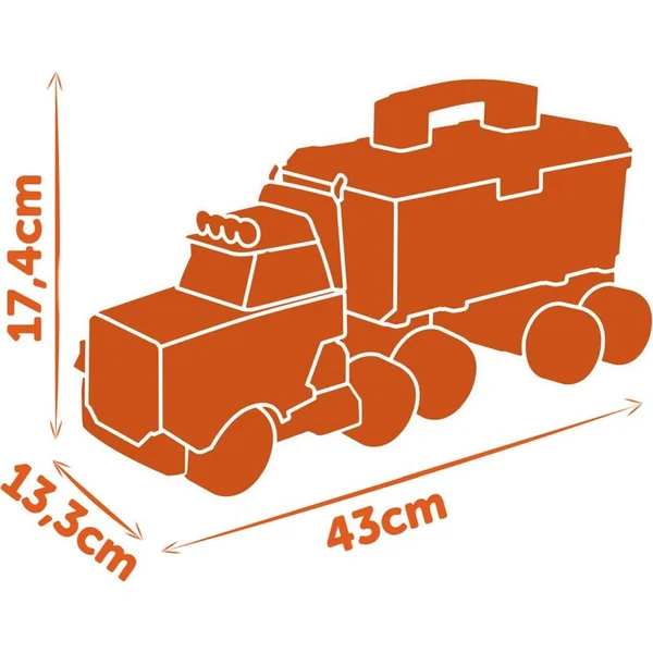 Camion sous licence Black&Decker avec remorque, qui sert de boîte pratique avec poignée pour les outils et une petite perceuse.