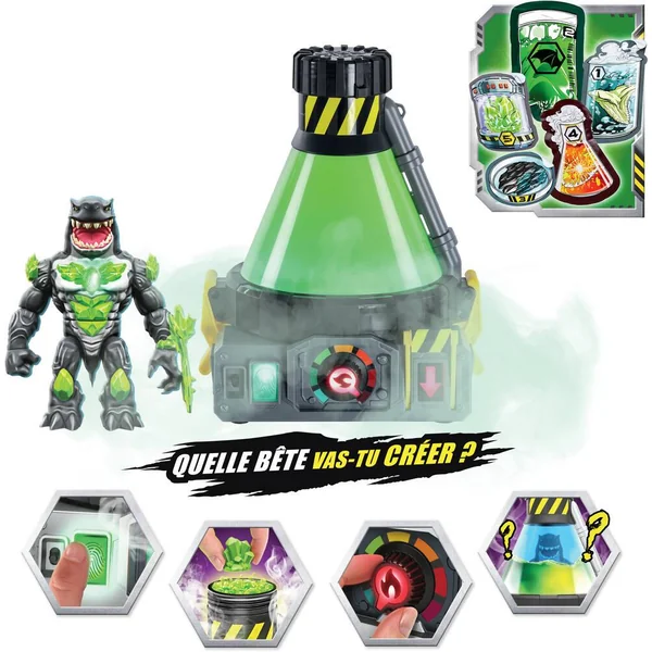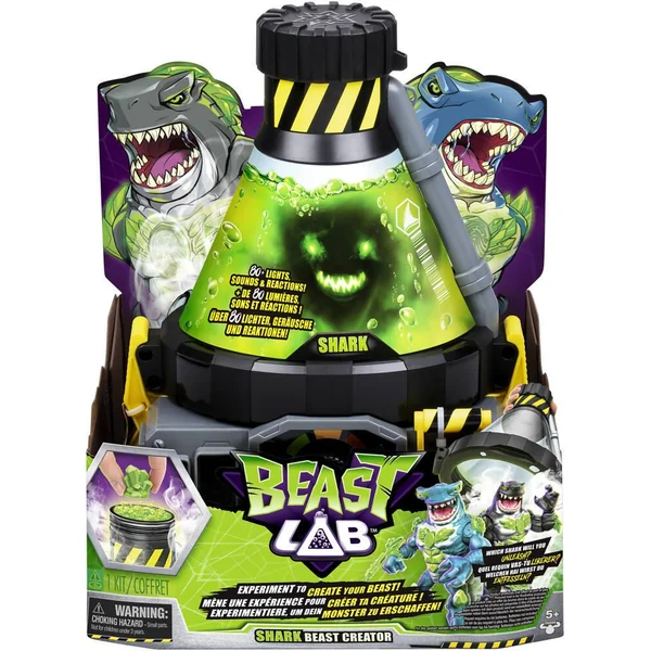 Active ton Beast Creator avec ton empreinte digitale et réalise une expérience incroyable : ajoute les différents ingrédients chimiques et actionne les commandes pour libérer ta créature ! Quel requin vas-tu créer ? Découvre et libère ta figurine sonore et lumineuse de 19cm de haut dotée d’une attaque coup de poing. Avec de la vraie brume biologique, plus de 80 lumières, sons et réactions, 1 figurine 19cm sonore et lumineuse et des heures de jeux.