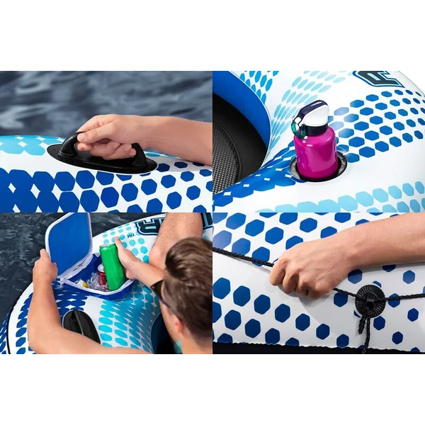 La corde de sécurité tout autour et les poignées solides assurent la stabilité et la sécurité, tandis que les 2 œillets pour les boucles Clasp ‘N Go™ permettent de connecter facilement d’autres produits Bestway®.
