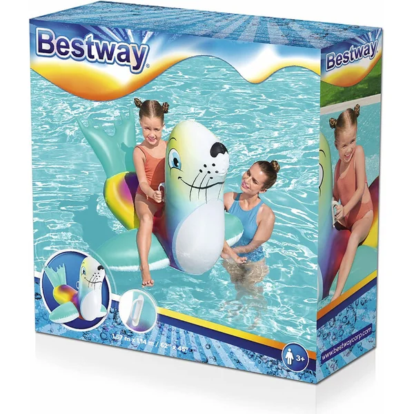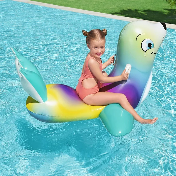 Le matelas flottant est conçu dans un style ride on. Les enfants peuvent donc s’asseoir en toute sécurité sur le canard gonflable et se tenir à 2 poignées robustes.