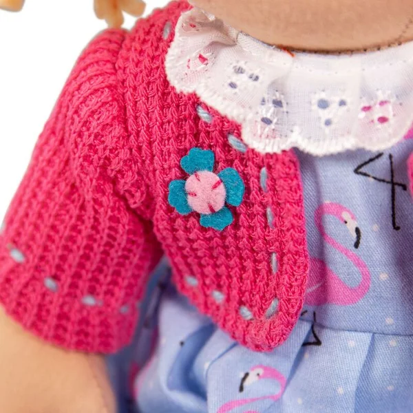 Rencontrez Maggie ! Cette poupée en tissu douce et câline attend juste l’amour et l’amitié de son nouveau meilleur ami ou de sa nouvelle meilleure amie. Sa belle tenue se compose d’une robe bleue avec un motif de flamants roses et d’un boléro rose. Avec son sourire charmant, elle saura certainement conquérir le cœur d’un enfant au premier regard.