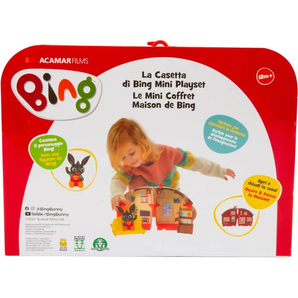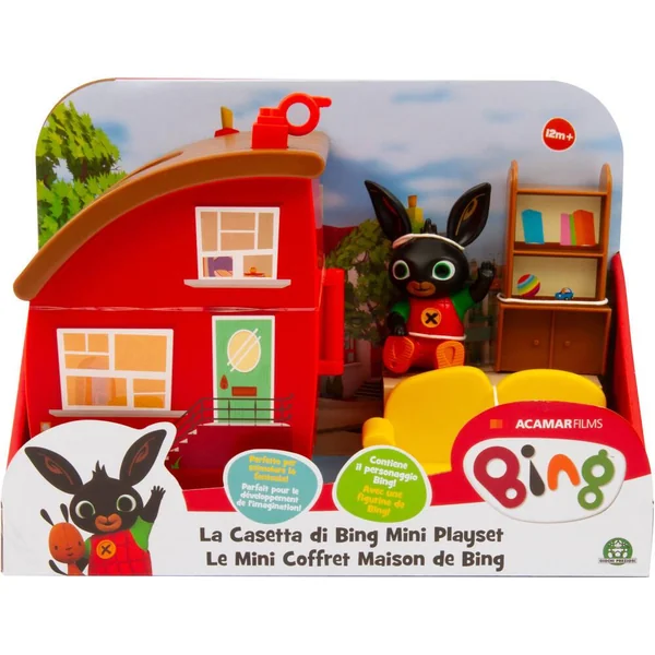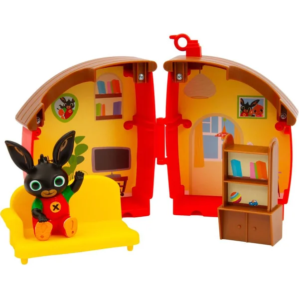 Le coffret comprend 1 figurine Bing articulée, 1 maison qui s’ouvre, 1 meuble et 1 canapé.