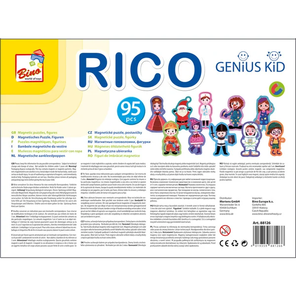 Jouet magnétique variable et combinatoire. Contient 80 pièces en carton rigide de haute qualité, à partir desquelles il est possible de construire 10 figurines différentes. Emballé dans des couleurs vives et dans un carton pliable de qualité. Le jouet aide à développer plusieurs compétences.