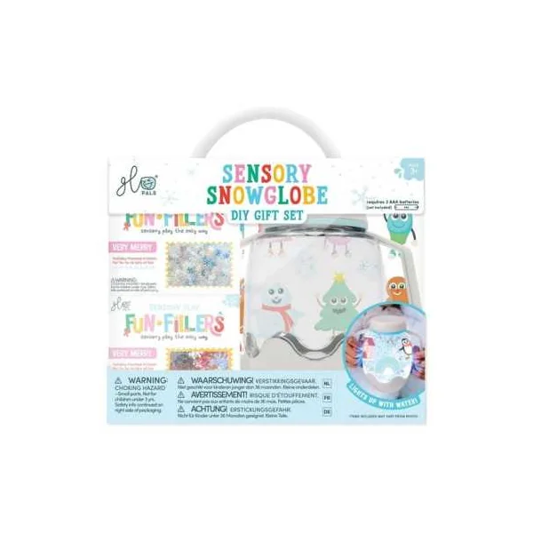 Découvrez le bocal sensoriel à personnaliser Noël de Glo Pals, un coffret complet permettant aux enfants, dès 3 ans, de personnaliser leur propre jarre à l’aide d’éléments sensoriels et de stickers réutilisables.