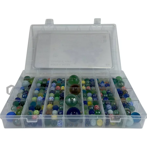 Conçue pour les enfants dès 6 ans, cette boîte renferme 230 billes de tailles variées, offrant une multitude de possibilités de jeux. Les billes se déclinent en quatre tailles : 3.5 cm, 2.5 cm, 1.6 cm et 1.1 cm, ce qui permet de diversifier les activités et de stimuler l’imagination des petits joueurs.