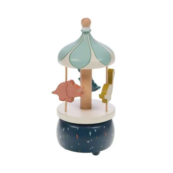 Ce cadeau trouvera sa place dans toutes les chambres d’enfants. Un manège musical où le mécanisme de la boite à musique se remonte en maintenant la partie inférieure du carrousel, tout en tournant le chapiteau dans le sens des aiguilles d’une montre.