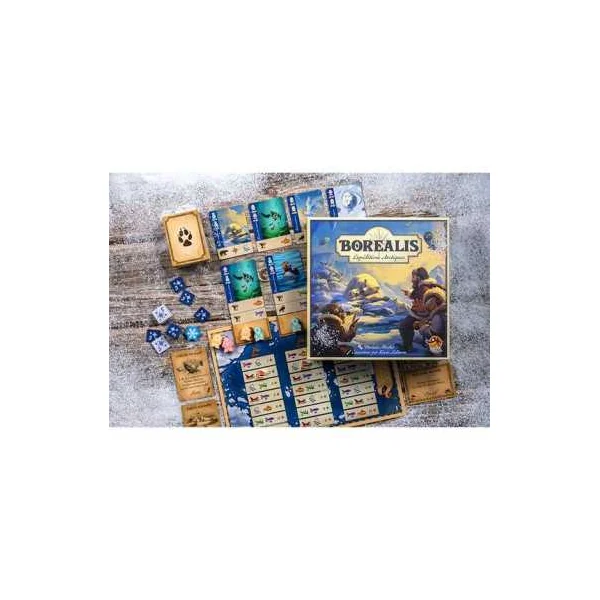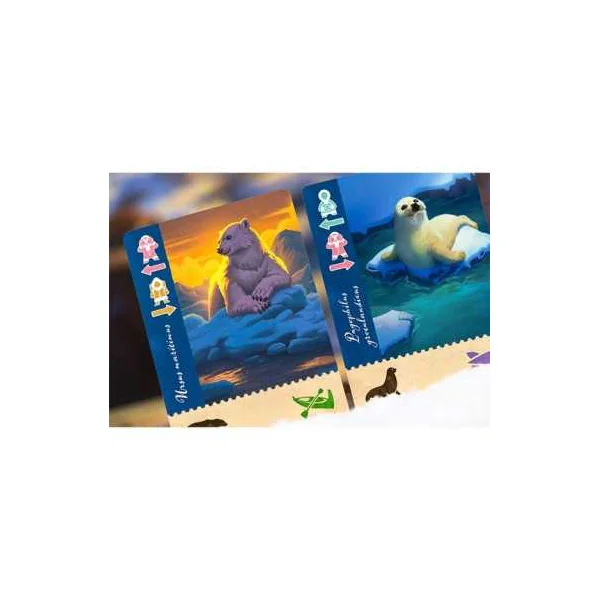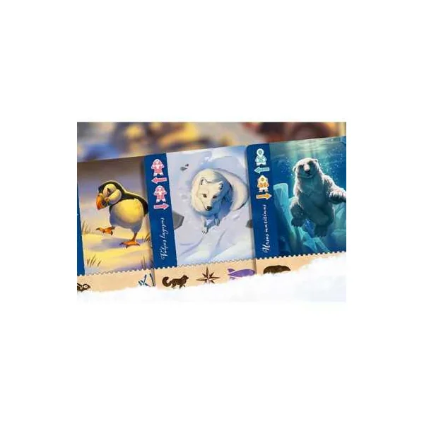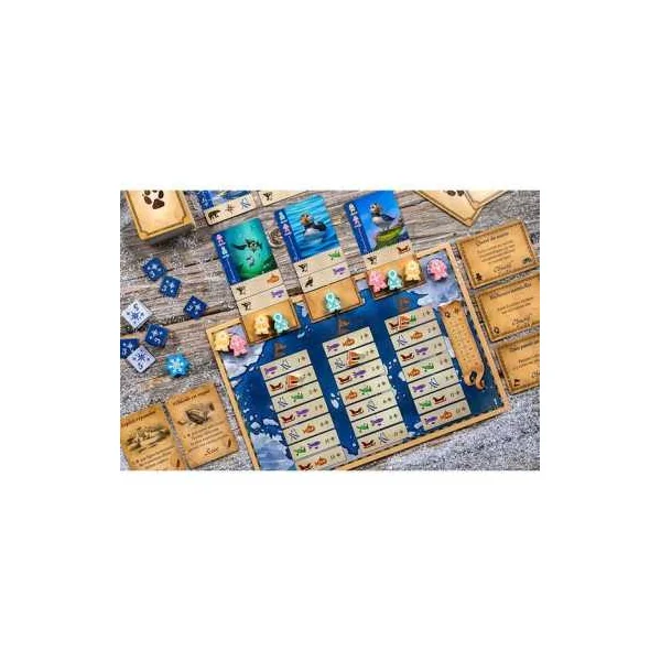 Partez à la découverte des terres boréales inexplorées afin d’observer et photographier des animaux sauvages. En tant que chefs d’expédition, chacun d’entre vous coordonne une équipe de 9 scientifiques issus de 3 champs d’expertise et représentés par des meeples de couleurs différentes. Vous devez également choisir les bons véhicules pour accéder aux eaux et champs de glace les plus reculés du Grand Nord.