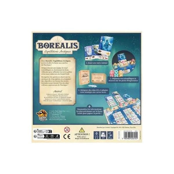Découvrez Borealis : Expéditions Arctiques de Lucky Duck Games, un jeu de stratégie captivant pour jouer de 2 à 4 joueurs dès 10 ans, qui invite à explorer les terres boréales et à photographier des animaux sauvages.
