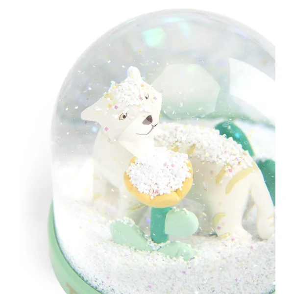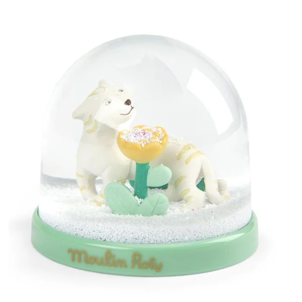 Hum… en voilà une douce odeur de fleurs ! Boule à neige représentant Baboo flairant la végétation de la forêt Mawa au milieu des flocons.