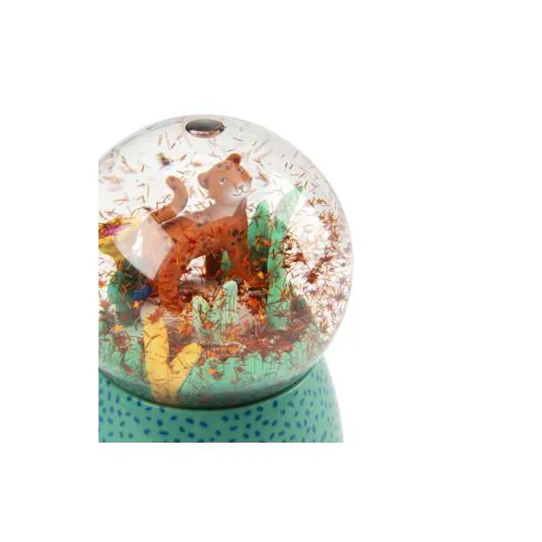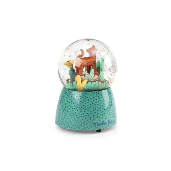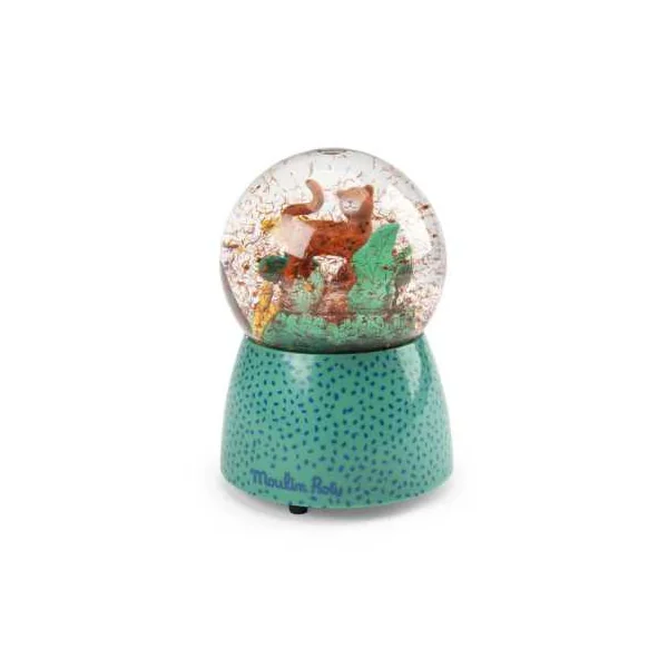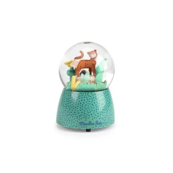 Une boule à neige musicale représentant Taïgo et Litchi en pleine promenade à travers les feuillages. Oh une fleur, un papillon ! Plus qu’une pièce de décoration, une douce mélodie résonnera au moment du coucher pour accompagner bébé aux pays des rêves.